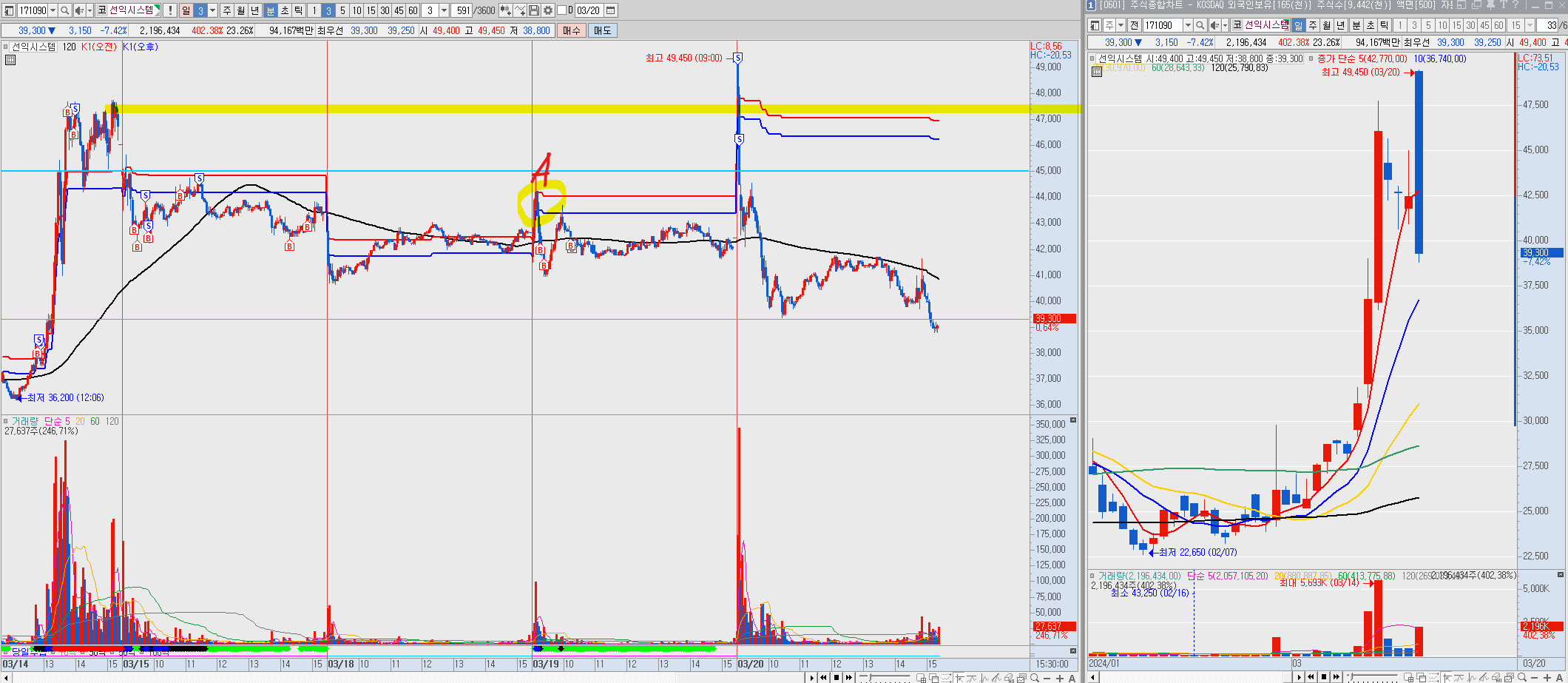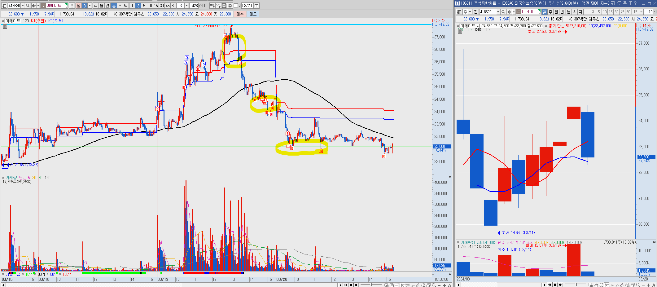 물론 팔고 살 수 있었지만 보통 그런 경우 재 매수하게 되면 물량이 더 안 잡히는 것 같습니다.